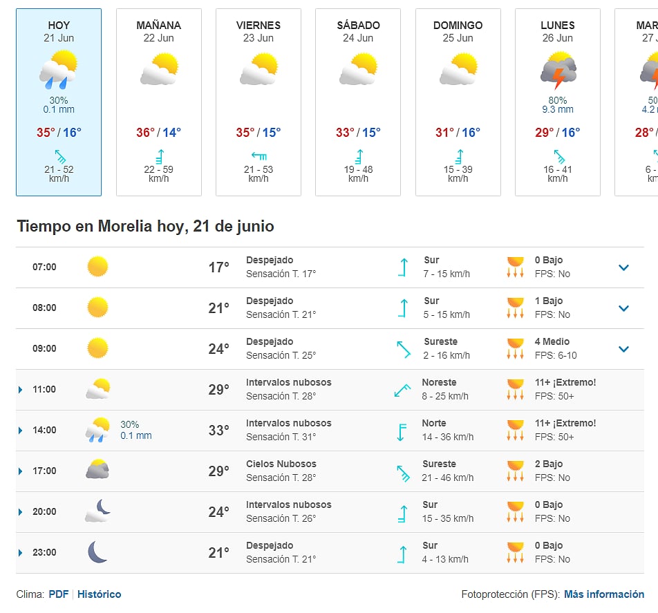 En su reporte, este día el organismo publicó pronosticó una temperatura mínima matutina de 16°C en Morelia.